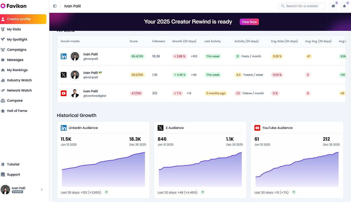 I started the year with one regular client, a startup from France, influencer marketing platform Favikon. The owner, Jeremy Boissinot, wrote to me in November 2024 after reading my posts on LinkedIn.