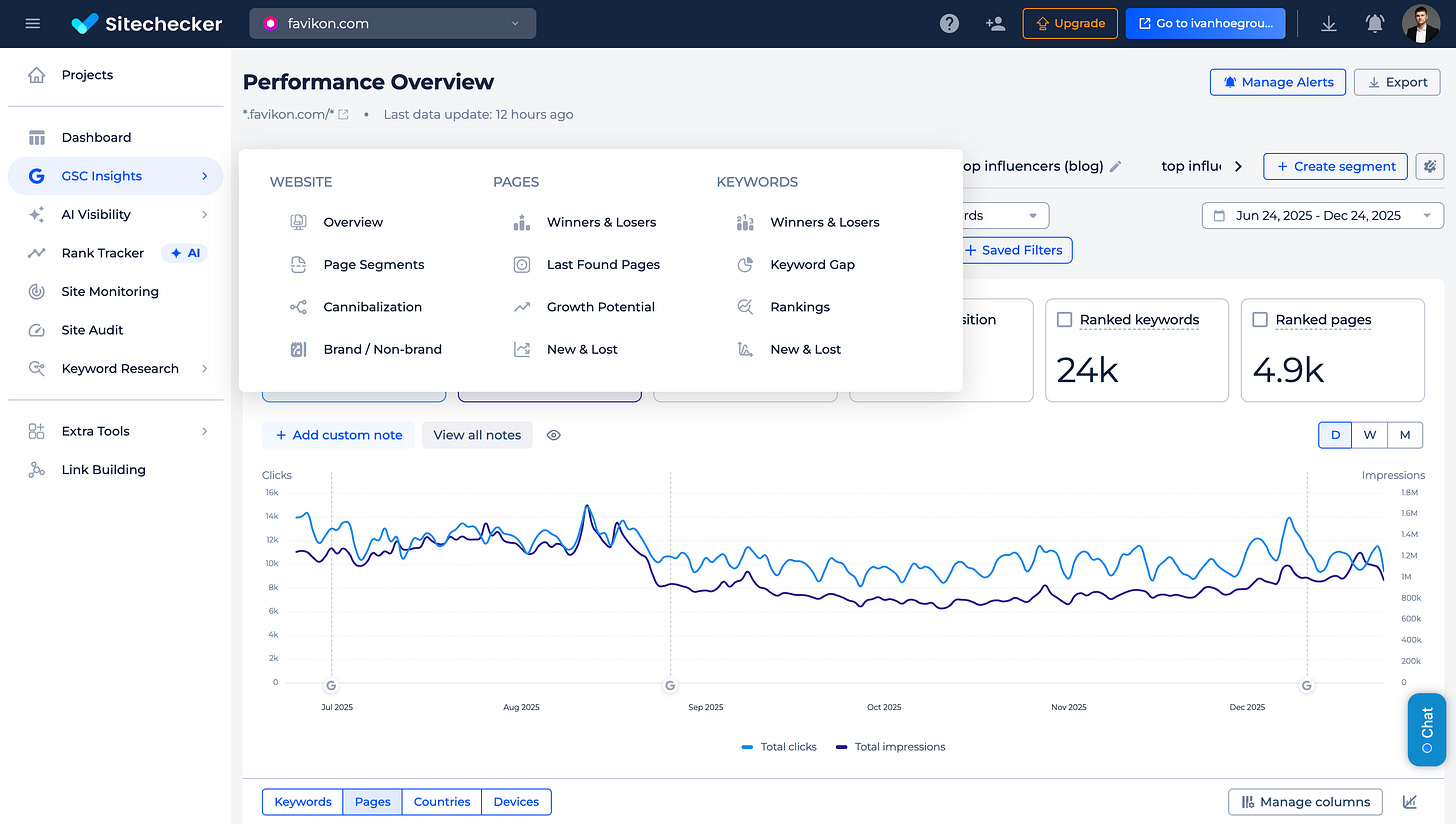 For the product, we decided to build advanced analytics based on GSC / GA4.